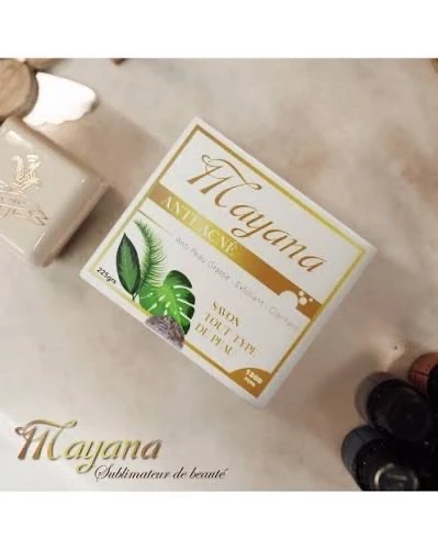 Découvrez la pureté naturelle avec Mayana, votre allié contre l’acné au quotidien. Ce savon, adapté à tous les types de peau, nettoie en profondeur, élimine l’excès de sébum et affine le grain de peau grâce à son action exfoliante douce.