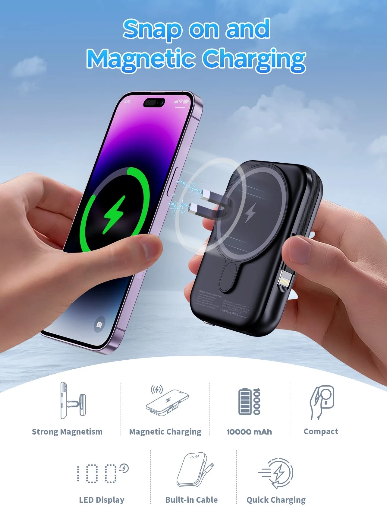 Fixation Magnétique (MagSafe) : S'aimante parfaitement au dos des iPhone (séries 12 à 16) pour une charge sans fil immédiate et sécurisée.
